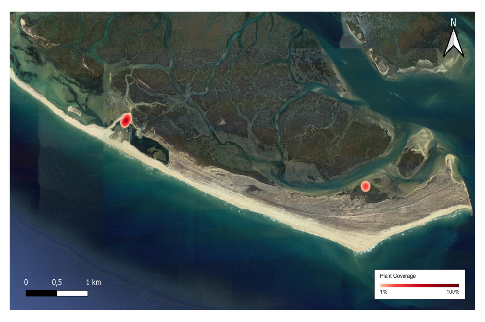 A planta floresce de maio a agosto. Ocorre em estuários, praias, lagoas costeiras e por vezes em sapais, junto aos estuários dos rios, em substratos lodosos, onde forma prados que frequentemente podem cobrir extensas áreas na zona intertidal.